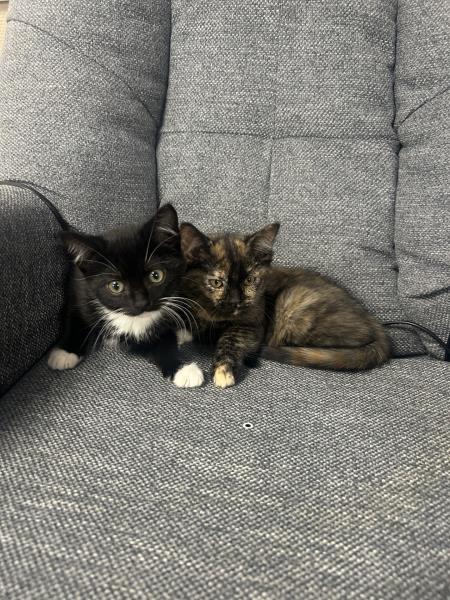Nous vous présentons Arrow sur la gauche de la photo et à droite sa sœur, Vénus. Les prénoms des chatons ont été choisis cette semaine par les résidents.