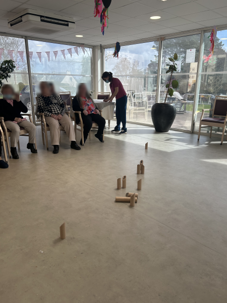 Maryline notre animatrice, a proposé aux résidents plusieurs parties de Molkky, ce que les résidents ont apprécié.