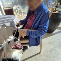 Publiée le 25/02/2026Hier après-midi, Emmanuelle qui occupe le poste d'agent de service hôtelière est passée dire bonjour aux résidents accompagnée de son chien Doudou. 🐾 Emmanuelle est passée voir les résidents afin de leur proposer de le caresser, et de lui donner des friandises ce qui a ravivé beaucoup de souv [...] Lire la suite