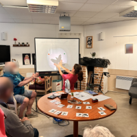 Publiée le 09/10/2025Aujourd'hui, Maryline, animatrice, a organisé la venue de deux bénévoles de l'association Les Blouses Roses. 👚 L'animation proposée aux résidents était un atelier autour des ombres chinoises. Petites histoires en lumière, chansons, jeux de mains... tout le monde s'est laissé emporter par la [...] Lire la suite